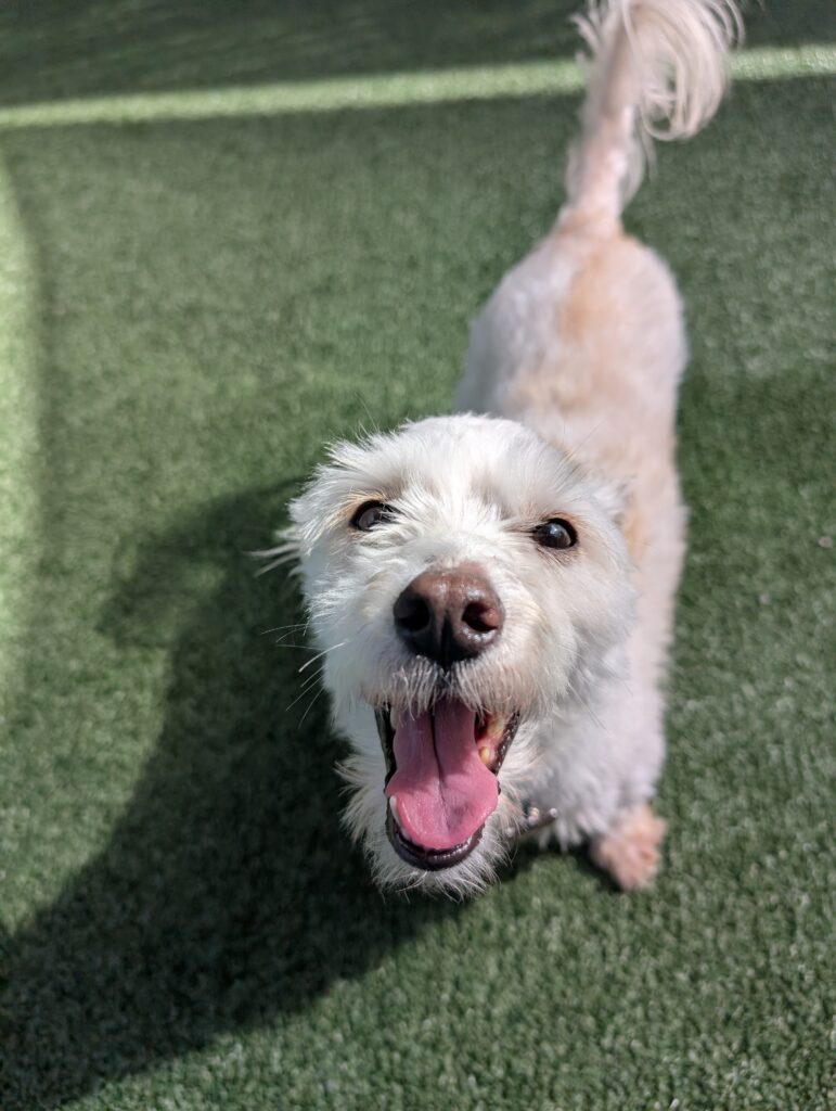 Every good Bean needs time to sprout, and this little legume is no exception. Bean is a 10-pound, white mixed breed with soft eyes, a fluffy coat, and the kind of gentle sweetness that sneaks up on you. He can be shy at first, especially with new people, but give him a little patience and space and you will be rewarded with something wonderful: a wiggly, hopping, full-body celebration every time you walk into the room. Once Bean decides you are his person, he means it.
