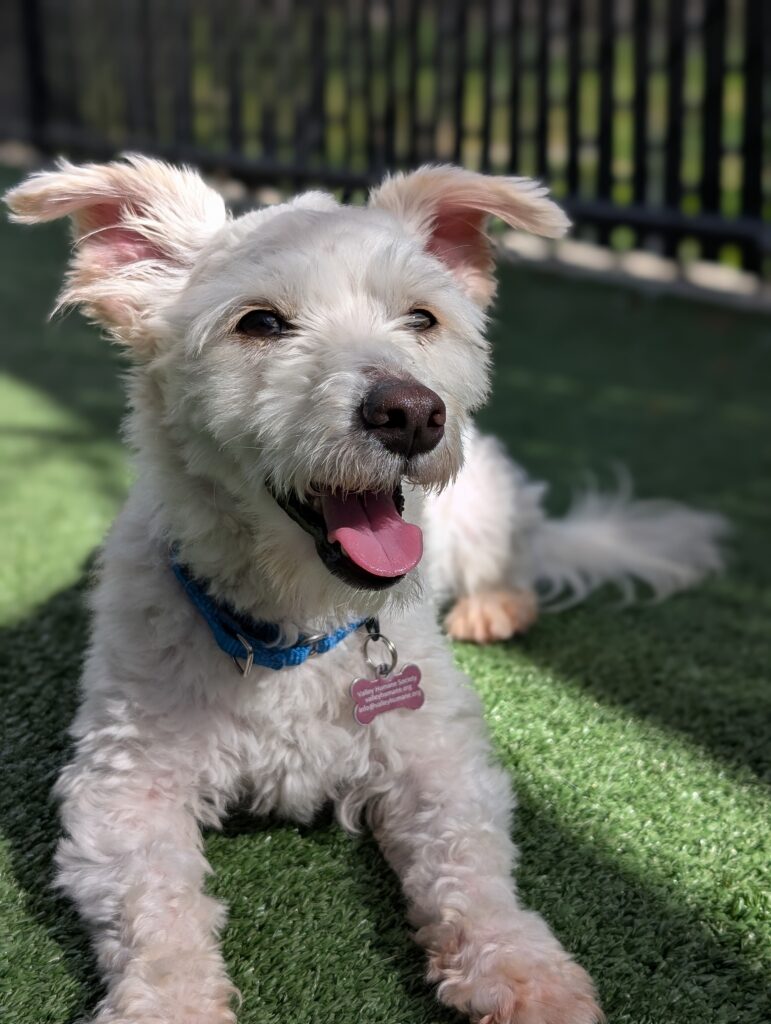 Bean arrived at Valley Humane Society in mid-January after transferring from the Tri-City Animal Shelter, where he had been found as a stray. He was heavily matted and dealing with ear infections, and it was clear he had been on his own for a while. Our team got him the care he needed, including a much-needed haircut and medical treatment for his ears. His coat has since grown back in soft and fluffy, and he is feeling like a brand new dog. Watching him come back to life over the past few months has been one of the best parts of having him here.