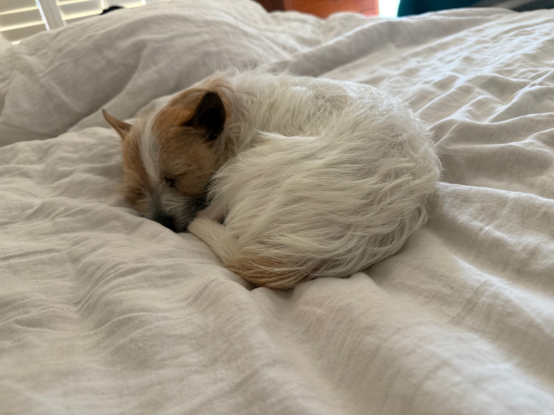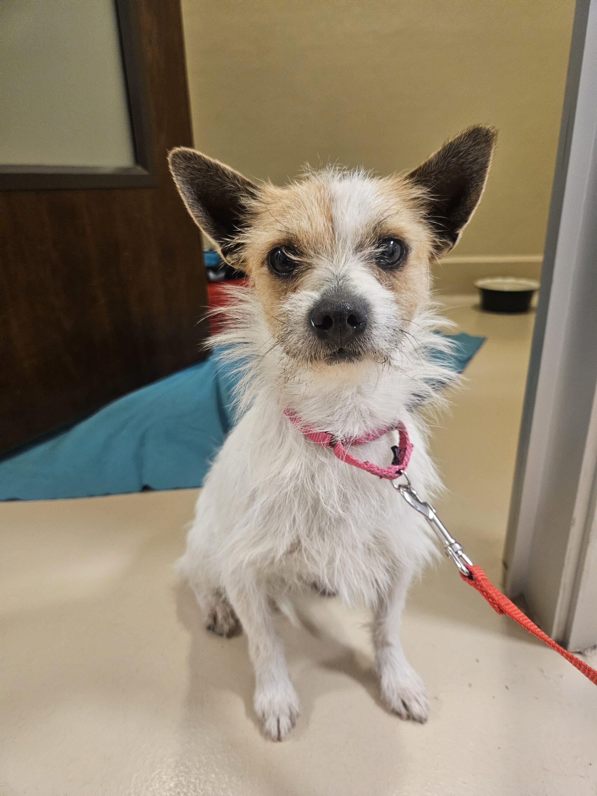 Straight from the (very tiny) tundra, it’s Moose—a 12.3-pound terrier mix with the heart of a wilderness explorer and the manners of a perfect expedition teammate. While he may be more than 100 times smaller than a real moose, this pint-sized pioneer is great with dogs and kids, loves a cozy den, and is always up for a gentle stroll through the forest. Quiet, crate-trained, and full of frontier charm, Moose is ready to leave the wild behind for a warm, loving home.